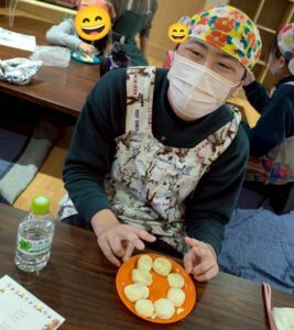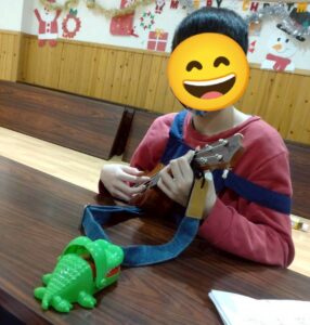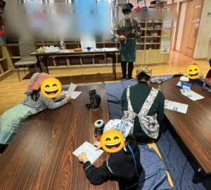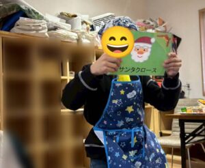 クッキーの焼き上がりを待つ間にレクリエーションで見つけたカードの振り返りと、クリスマスソング歌唱を行いました!クリスマスソング歌唱は、職員のウクレレ演奏に合わせて全員で歌うことができました!