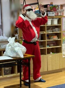 サンタさんがジニアスに来てくれました!サンタさんが持ってきてくれたのはお菓子のプレゼント!