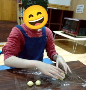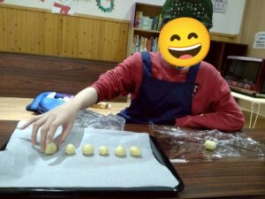 今回の活動は、クッキング体験として「スノーボールクッキー作り」を、レクリエーション活動として「クリスマスカード探し」を行いました!